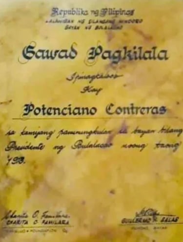The Contreras of Bulalacao (Mait) are of Maginoo lineage, historically documented from the early 1700s to the present day. Spanish colonial records, including documents bearing the prominent signatures of Nicolás Contreras, show the clan as the paramount authority of the expansive territories of Southern Mindoro, occupying the position reserved for the ruling line of the region.